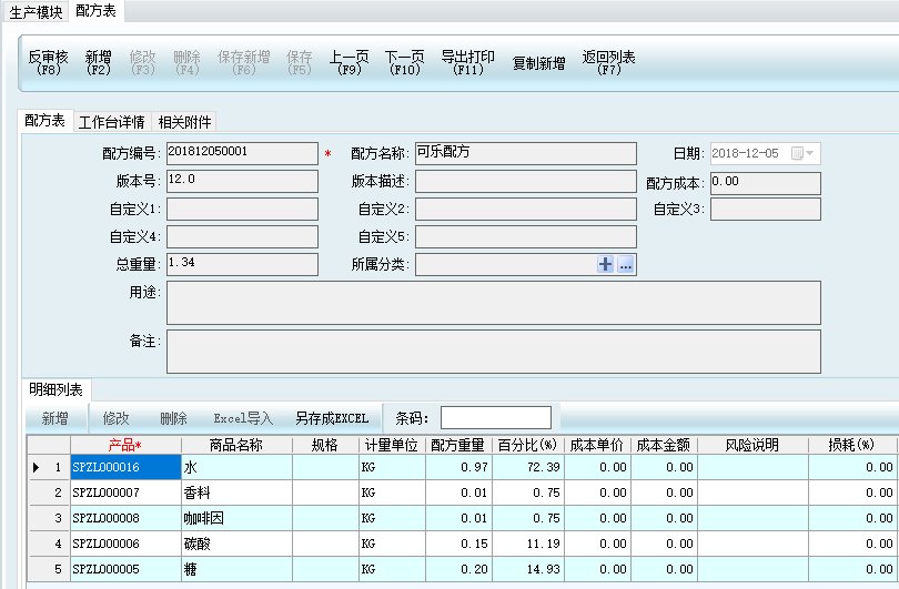 4、BOM與配方的靈活組合,可以兼容化妝品行業(yè)所有品類的產(chǎn)品,且支持套裝模式,支持多級配方。